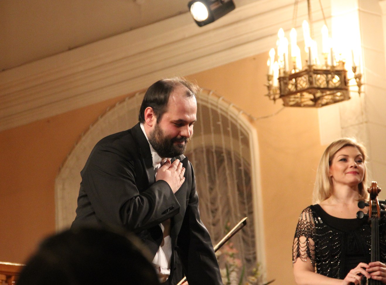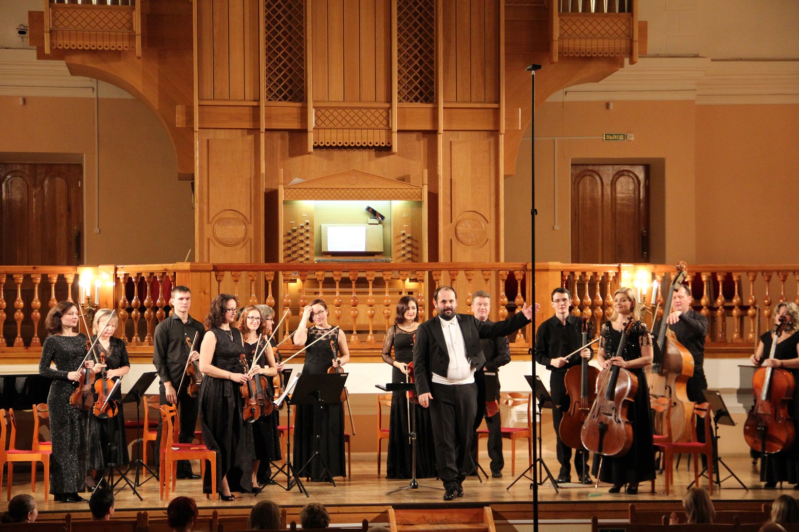 Из этих стран – от эпохи барокко и романтизма – зрители в своем музыкальном путешествии отправились в Россию. В концерте прозвучали сочинения наших соотечественников и современников: Шесть этюдов для струнных и органа Бориса Чайковского и Симфония №9 для струнных в четырех частях Николая Пейко. Но если первое произведение исполняется довольно часто во многих концертных залах и многократно записано разными оркестрами, то Симфония Н.Пейко ВПЕРВЫЕ В МИРЕ прозвучала в исполнении профессионального оркестра! Это последняя симфония композитора, написанная им в 1990 году. Спустя много лет зрители услышали и её под старинными сводами Камерного зала.