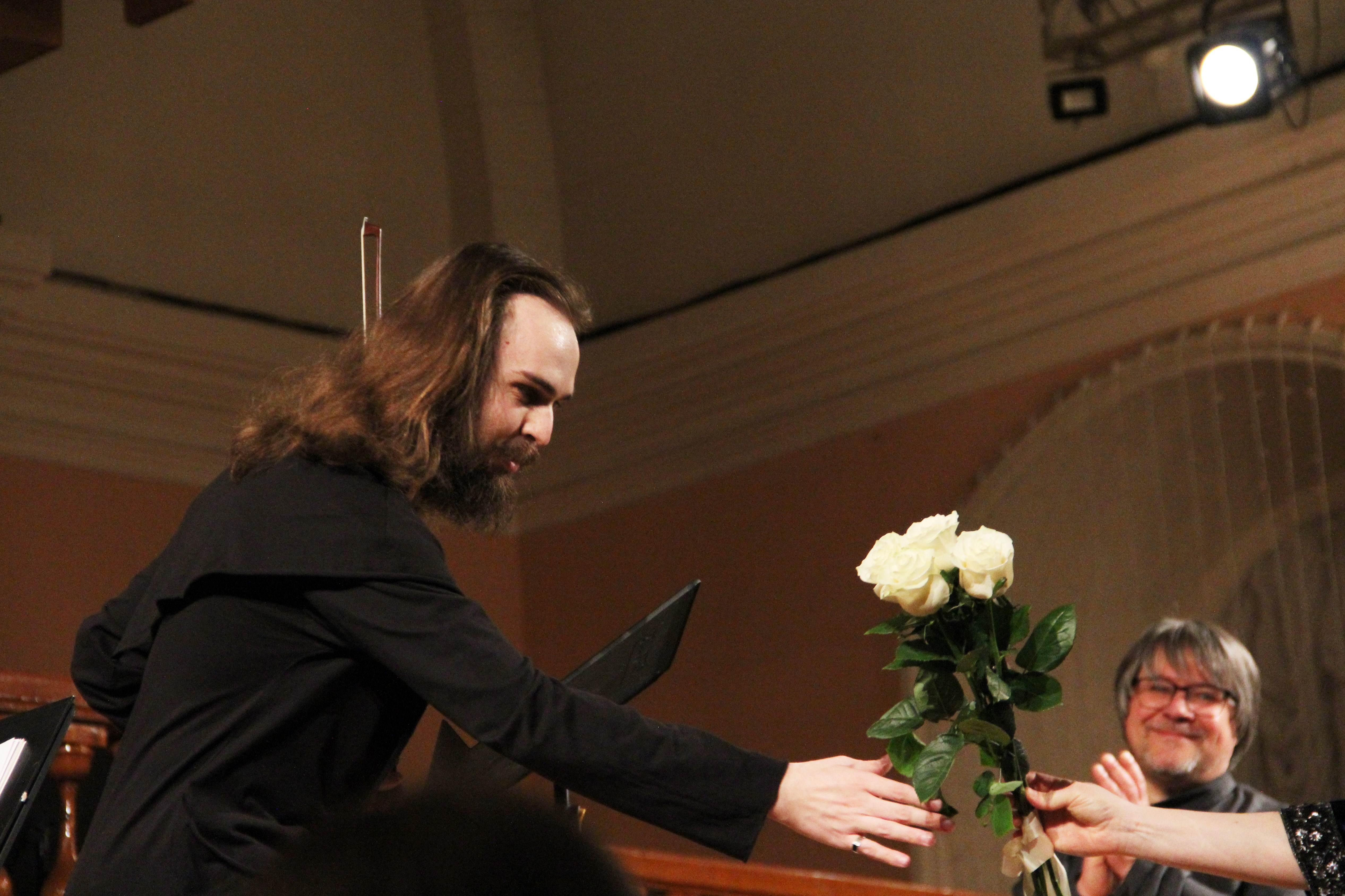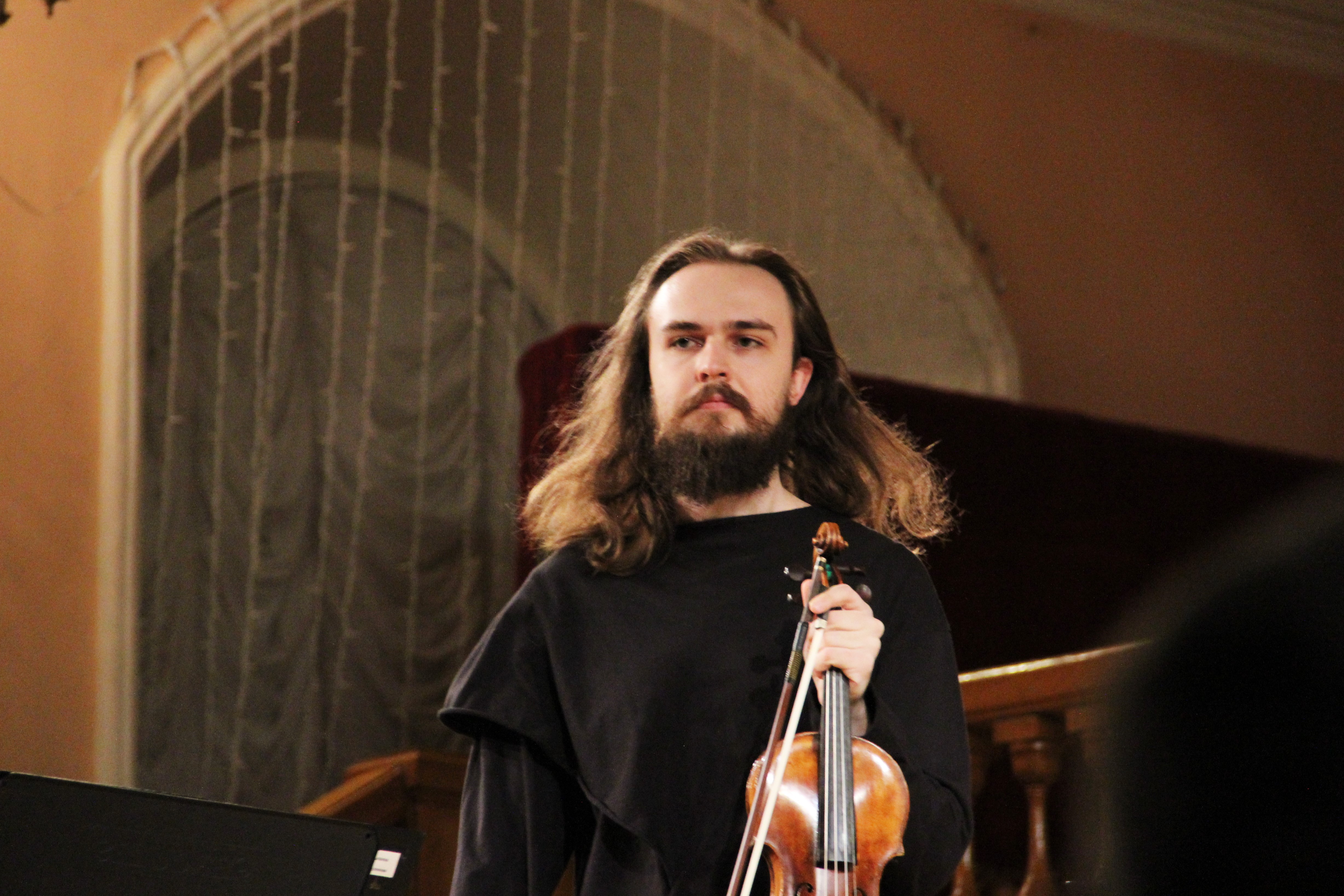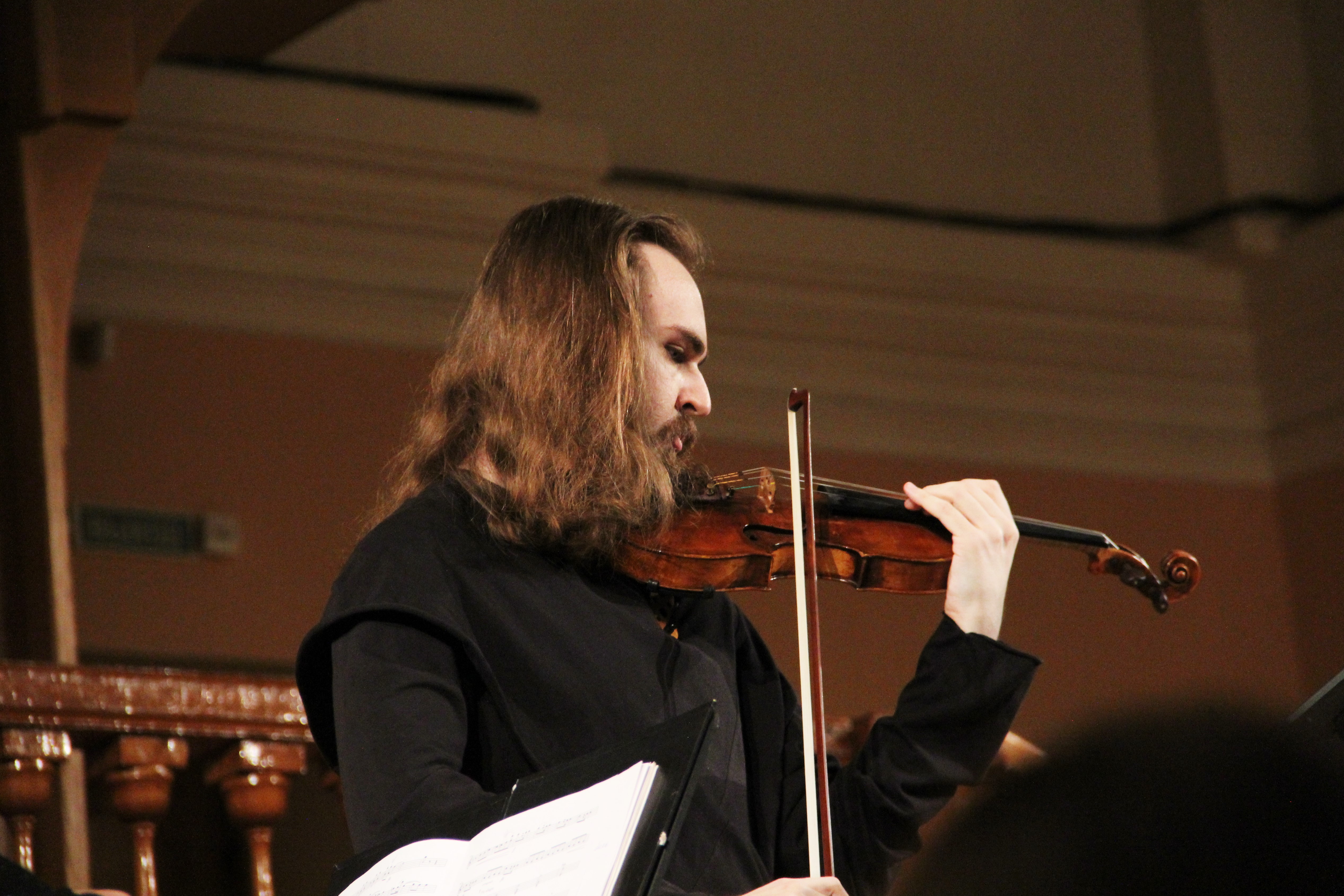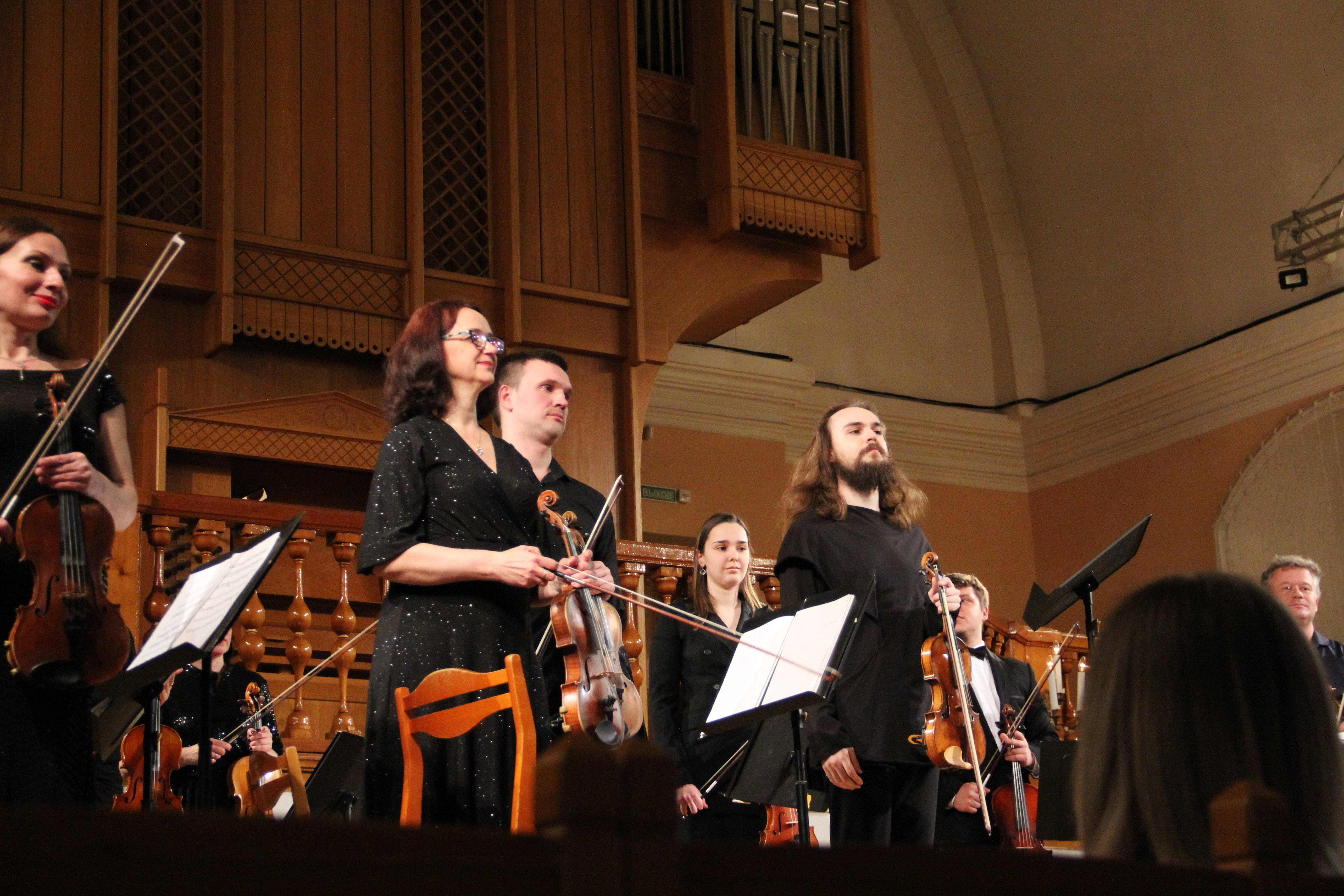 Во втором отделении прозвучал Канон Иоганна Пахельбеля и сочинения Альфреда Шнитке – Фуга для скрипки соло и Соната №1 для скрипки и камерного оркестра (партию клавесина исполнила Ирина Хайретдинова).