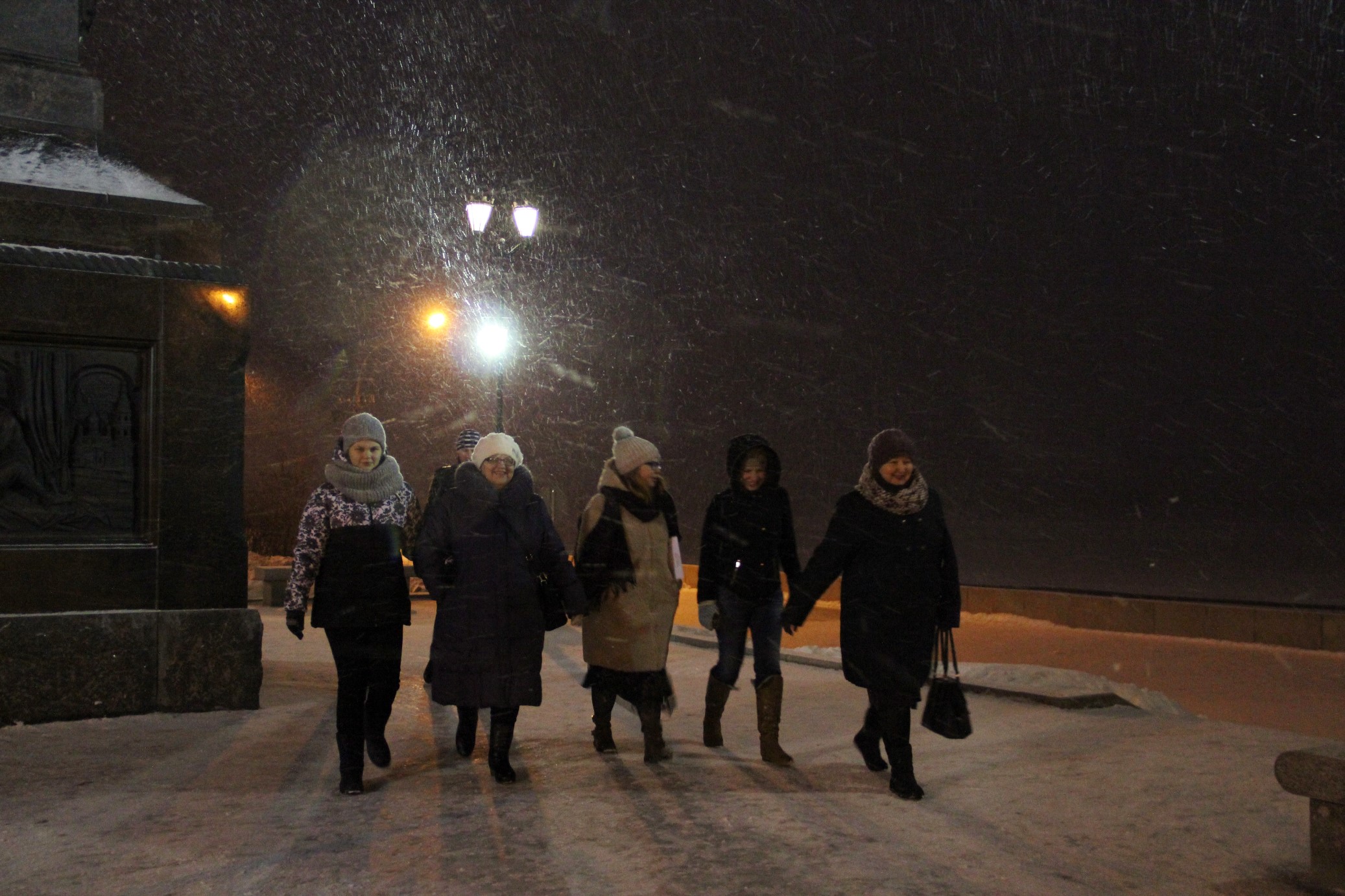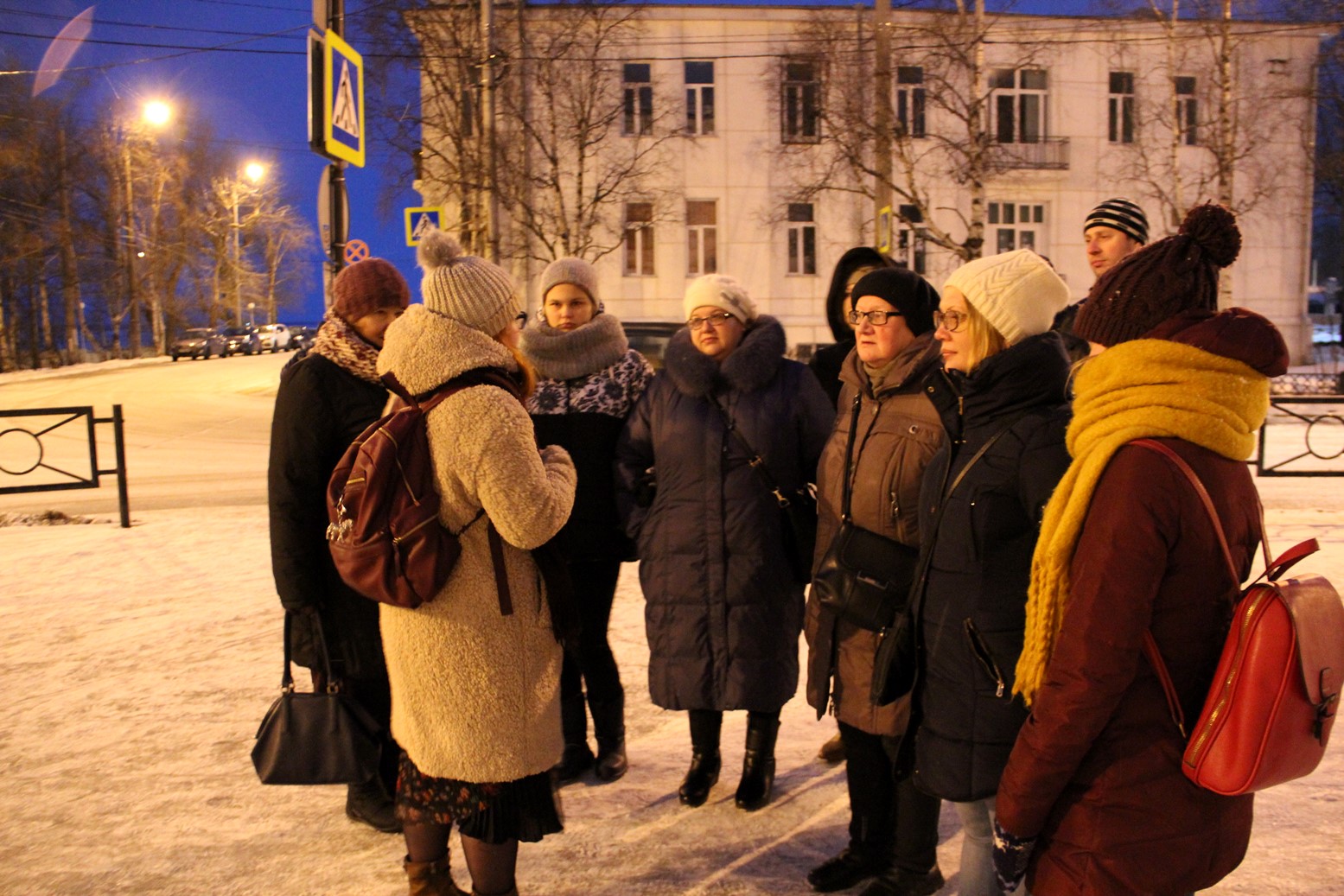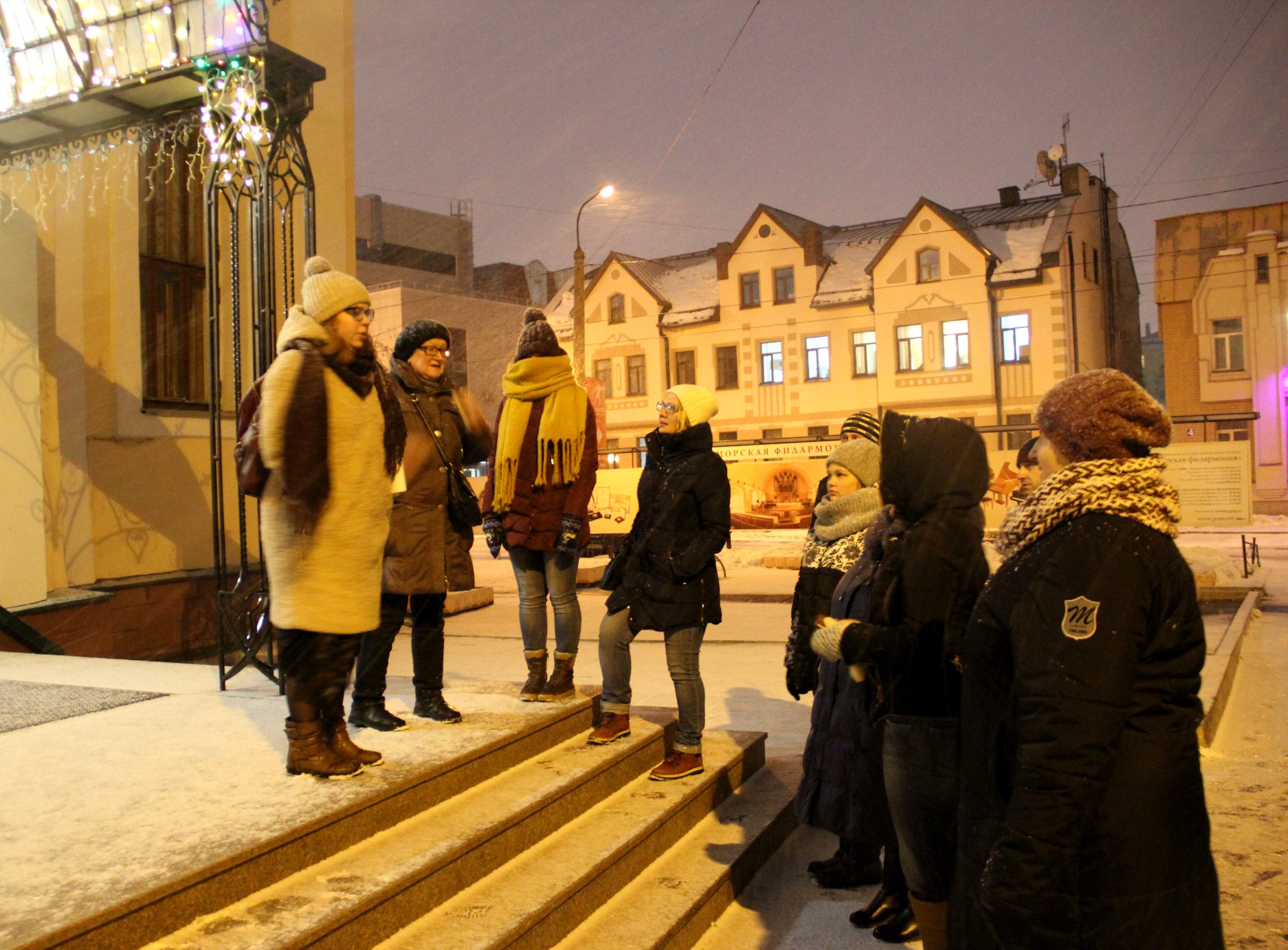 Кстати, об экскурсии в сочельник. В три часа, когда мы собрались у Марфиного дома, о метели не было и речи, зато потом она присоединилась к участникам из Архангельска и Санкт-Петербурга. Полина Никитина помогает иначе взглянуть на родной город, увидеть в нём образы прошлого, а ещё – даёт много ценной информации о книжных источниках, откуда многое можно почерпнуть самому. Она рассказала о том, как раньше праздновалось Рождество, почему в Архангельске было так много иностранцев и чем они занимались, где учились их дети, как проводили рождественские каникулы.